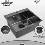Кухонная мойка из нержавеющей стали WS35040B WISENT (50х40 см) Графит PVD, сифон с ситечком
