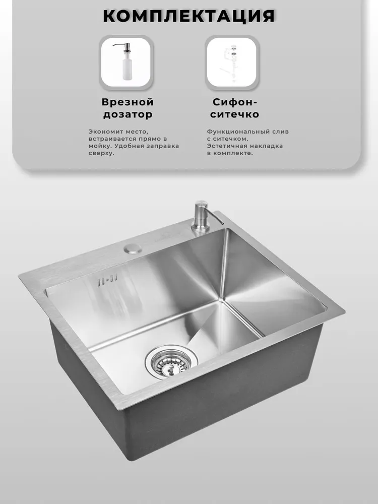Кухонная мойка из нержавеющей стали WS35040 WISENT (50х40 см) Сатин с дозатором и сифоном с ситечком